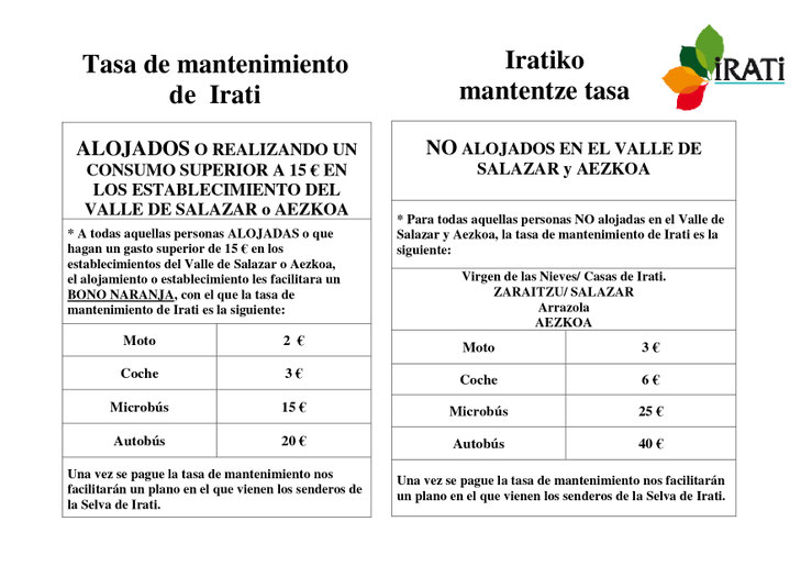 § Punto de Información. ABIERTO diario 08.30 a 19:00 ( Caseta de los guardas de Irati )